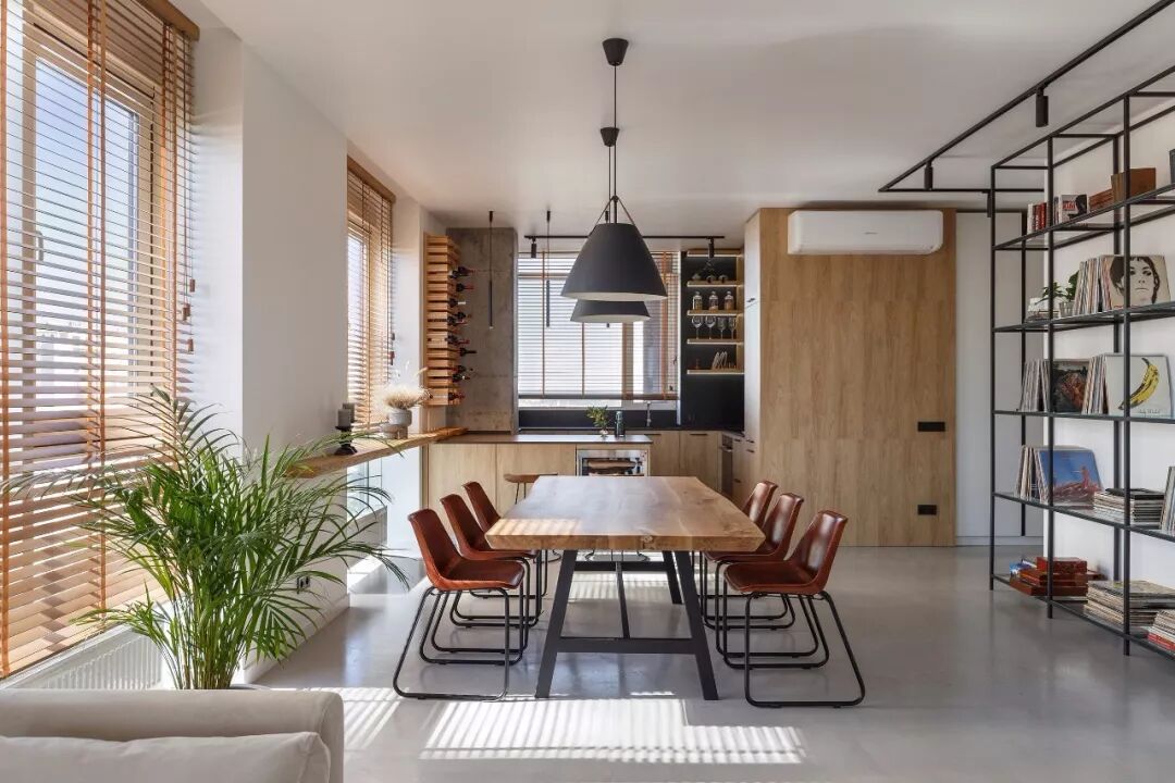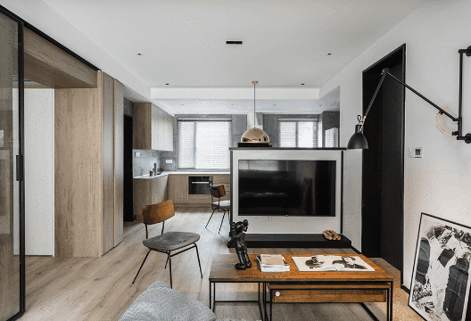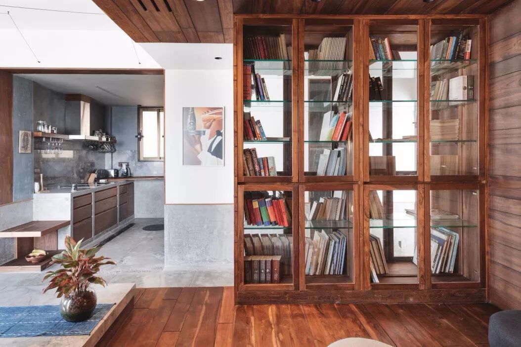 但当冰冷粗糙的水泥墙遇上温润质朴的原木材质时,木材的温暖和水泥的清冷相互渗透,彼此平衡,就能巧妙地提升整体空间温度,让室内环境更富有层次感,看起来别有一番韵味。