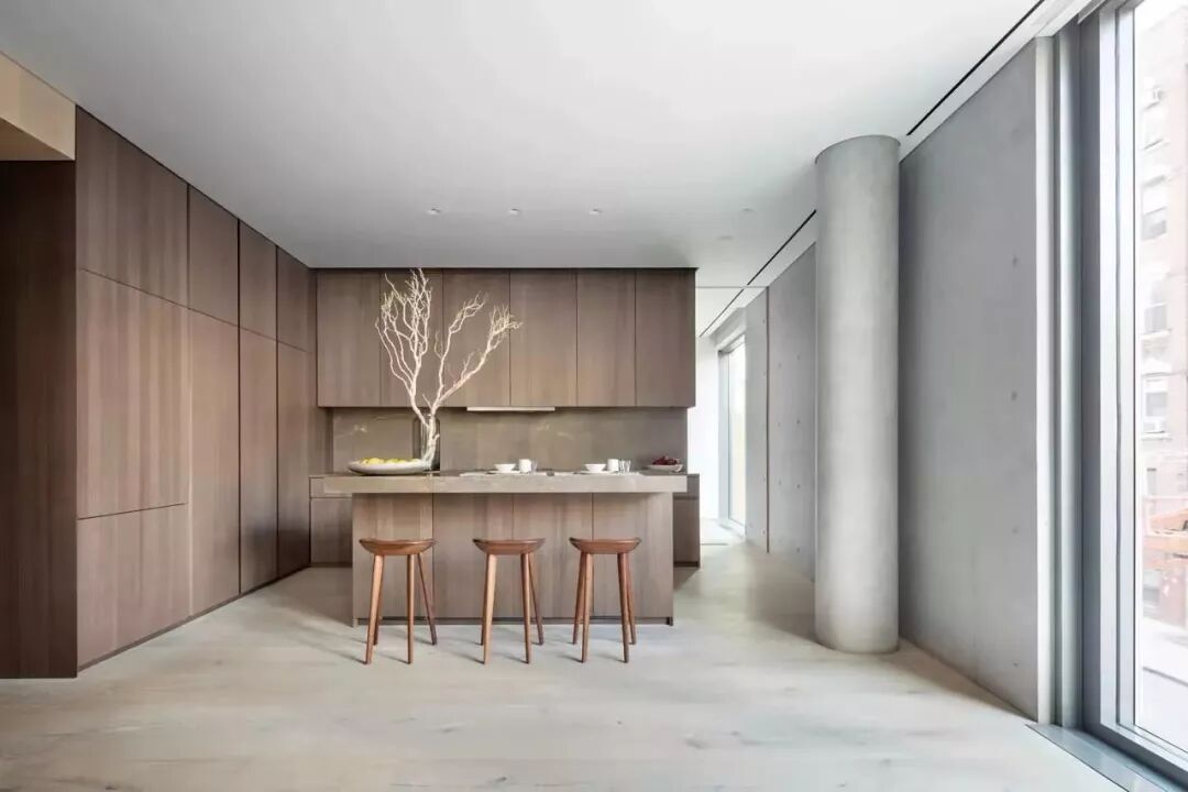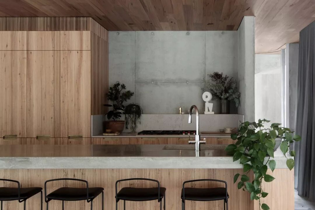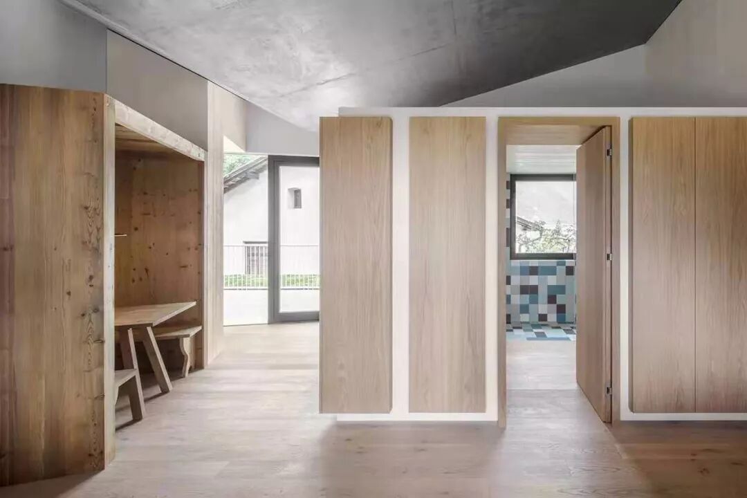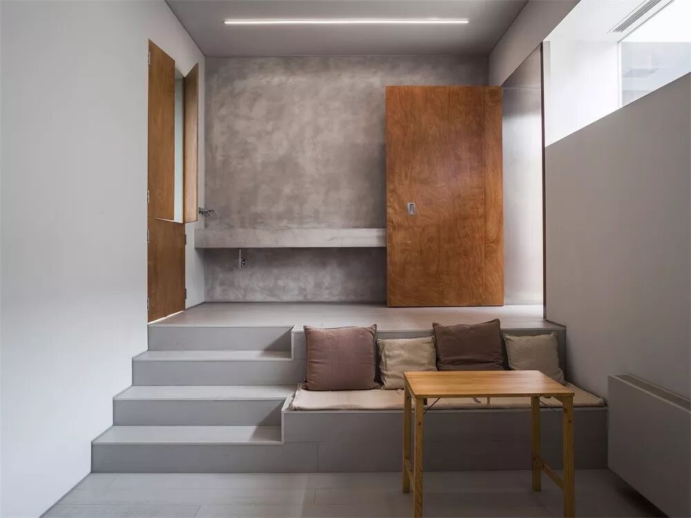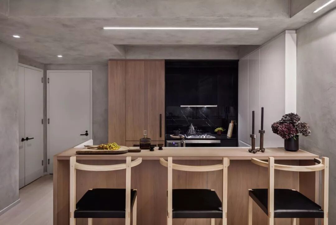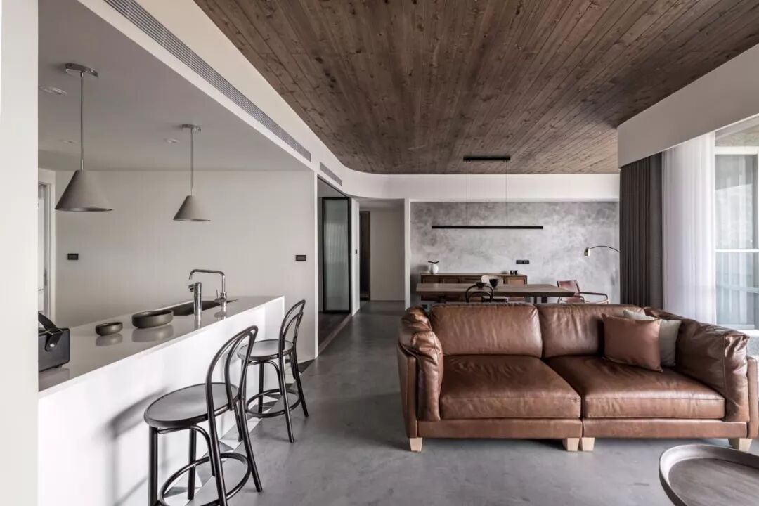 原木与水泥的相遇不仅让空间变得更加温暖,还为简洁质朴的空间增添了一丝原始的简约感。