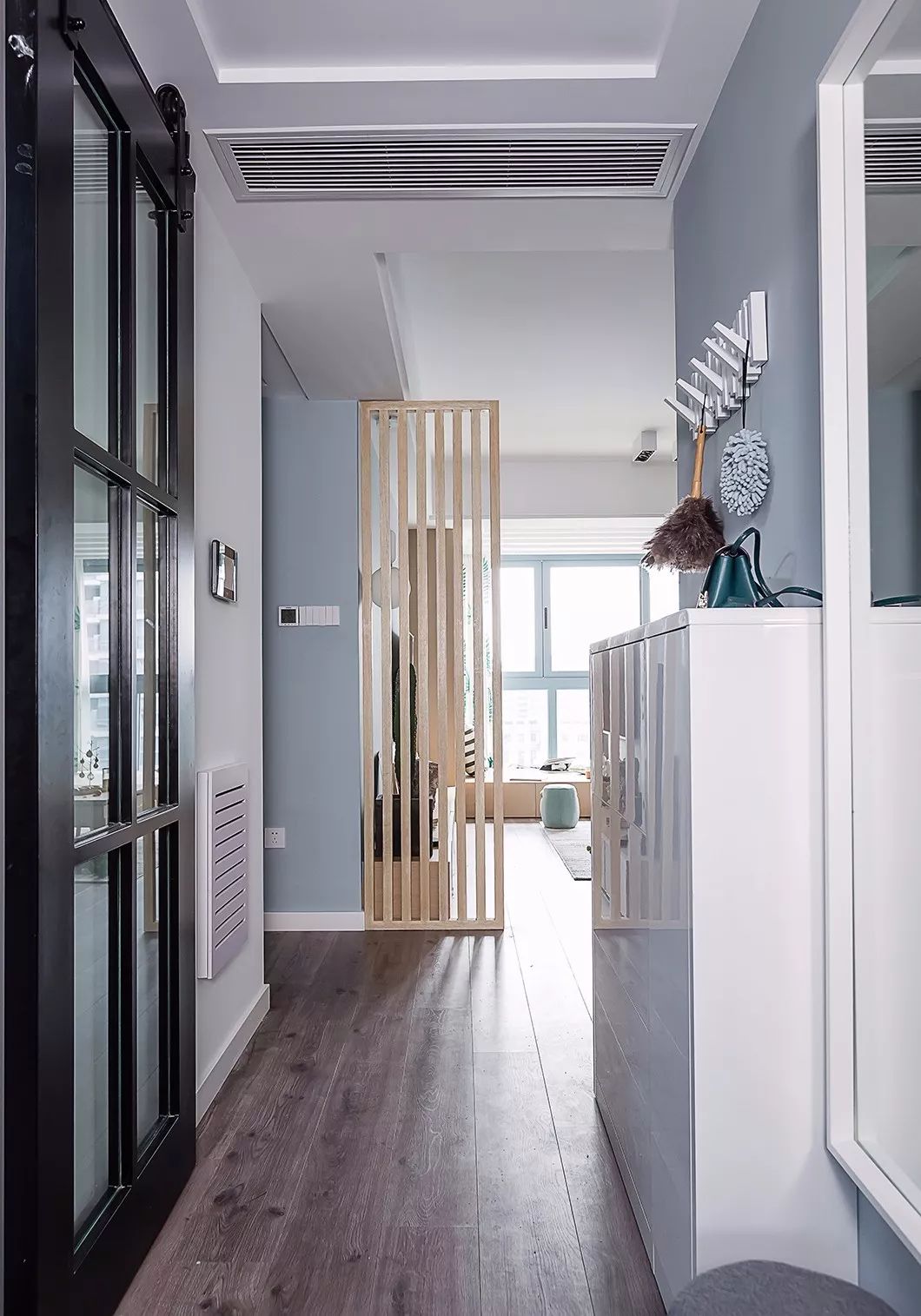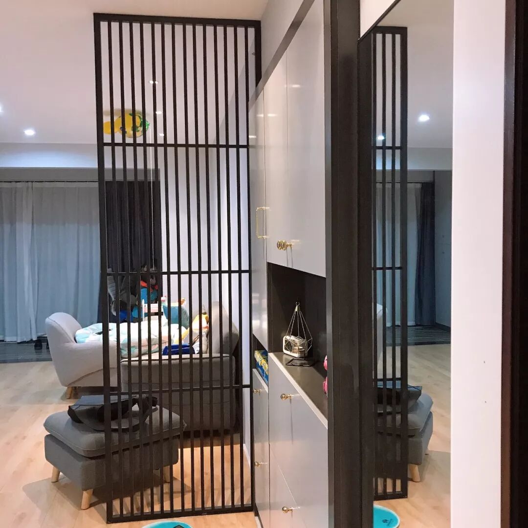 玻璃屏风,一般现在流行的是与黑框结合起来的设计,主要是一些轻奢、北欧简约等风格搭配比较常见。