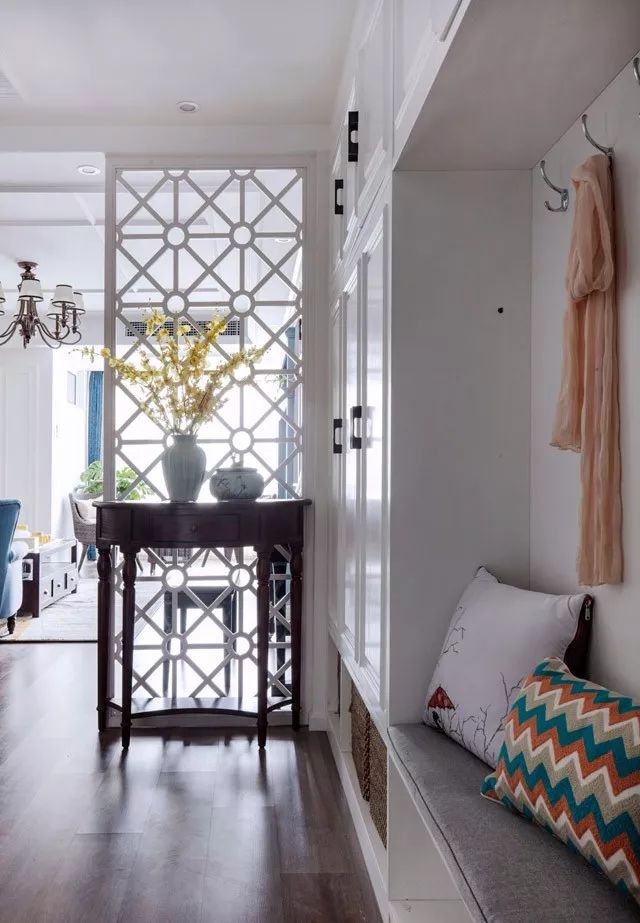 像在偏现代的风格,现代美式、欧式等装修设计中,白色的屏风搭配的效果就是比较优雅华丽了。