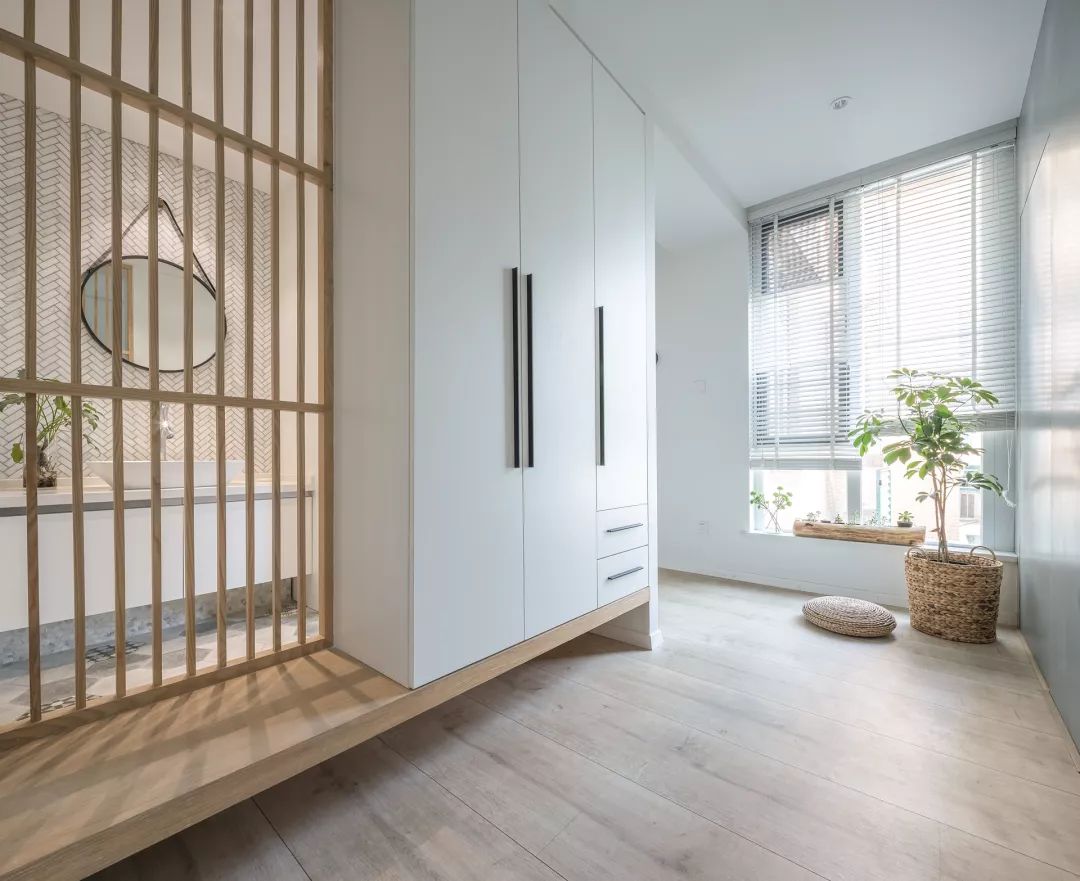 木质的屏风,根据木材颜色深浅与质感,浅色木质可以搭配在简约北欧等现代风格,而一些颜色比较深的话,则可以与一些比较禅意端庄的风格(比如中式)和谐搭配。