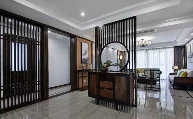 在比较端庄的中式设计里,如果整体家居有用到黑色元素的话,那么布置一个黑色的屏风,也是可以让空间设计元素相互呼应。
