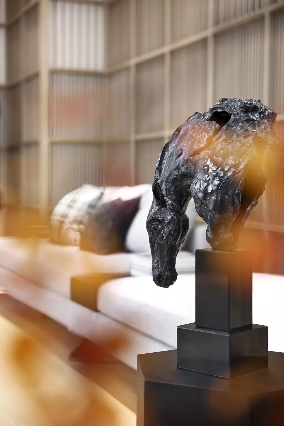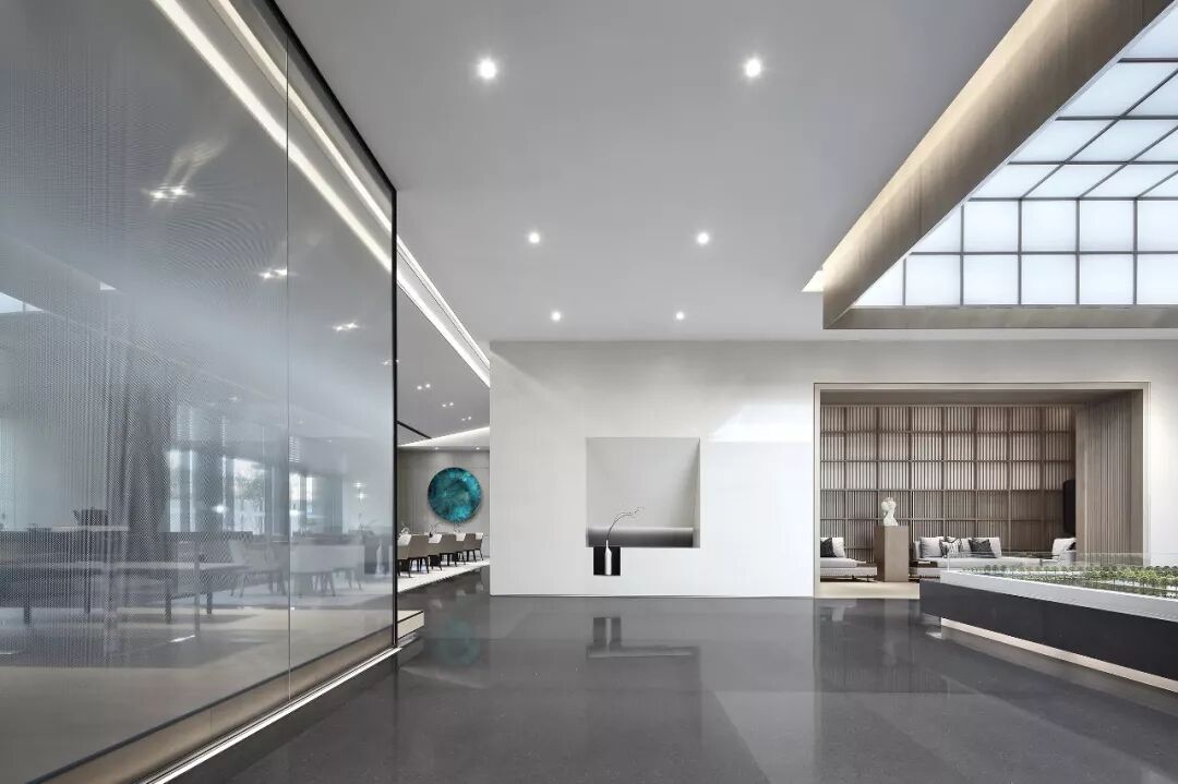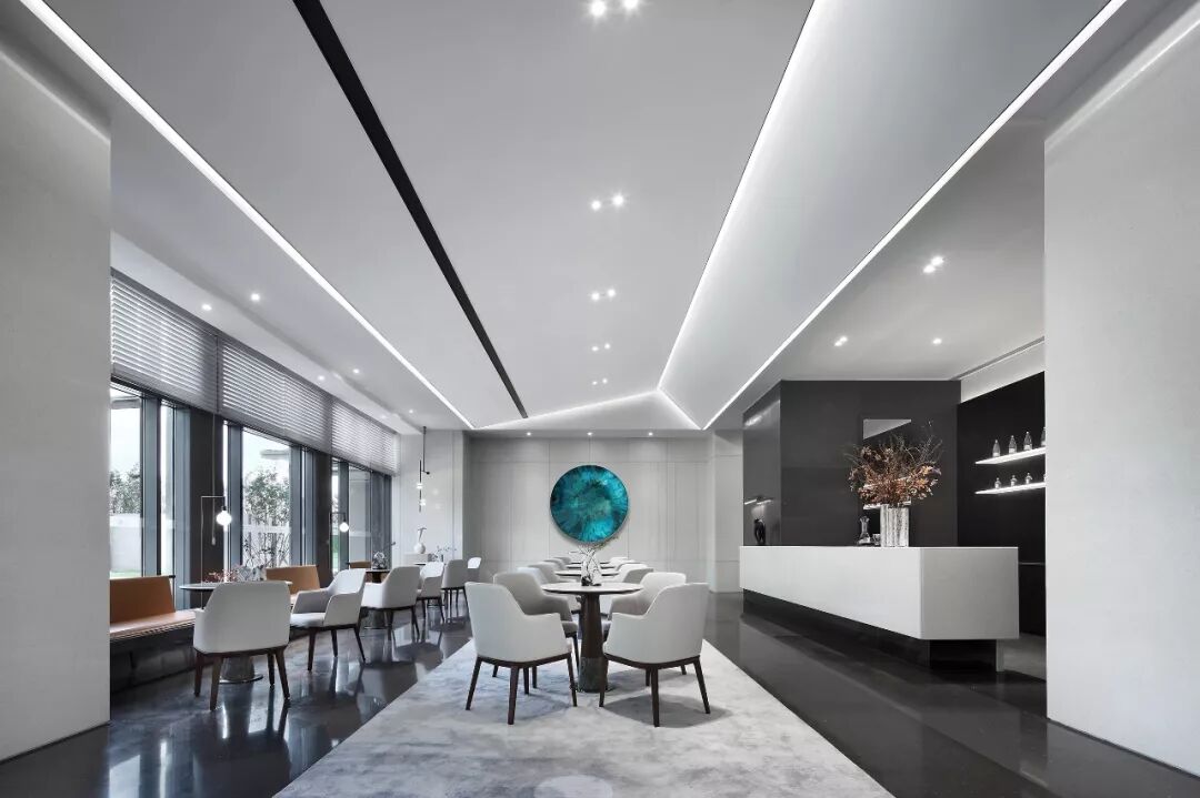光与影共存,就像深度洽谈区,设计师将光作为独立的材质渗透到空间的各个角落。
