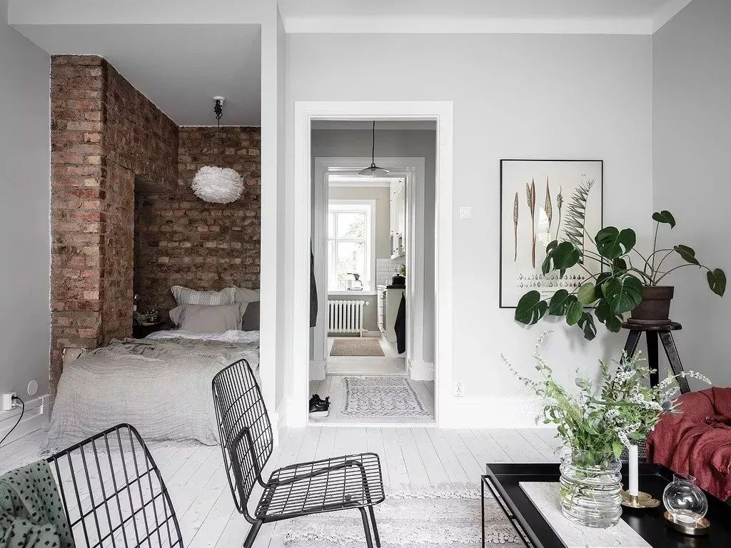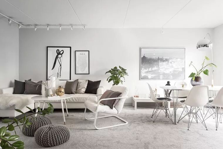 它常以白色为主调,局部采用鲜艳的纯色软饰、绿植加以点缀;或以黑白为主调,不加其他颜色,而是用保留原始质感的木质家具,力求表现自然舒适的生活意趣。
