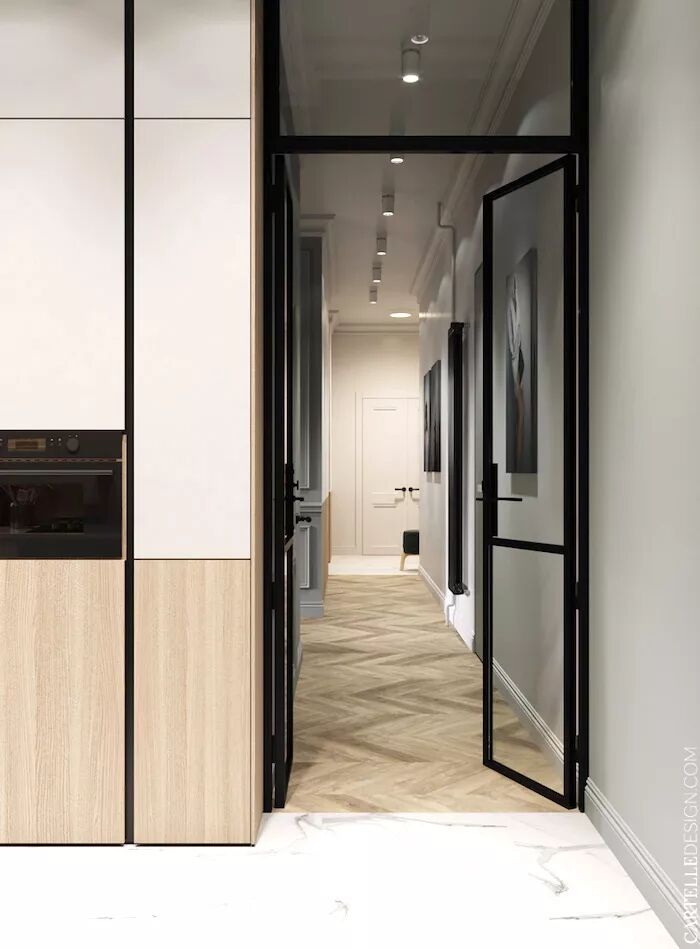 这次由CARTELLE DESIGN 设计团队规划的公寓中,就通过这种线框以现代手法诠释温润轻柔的古典风情。这种立体感,还是很经典的,怎么看怎么美~
