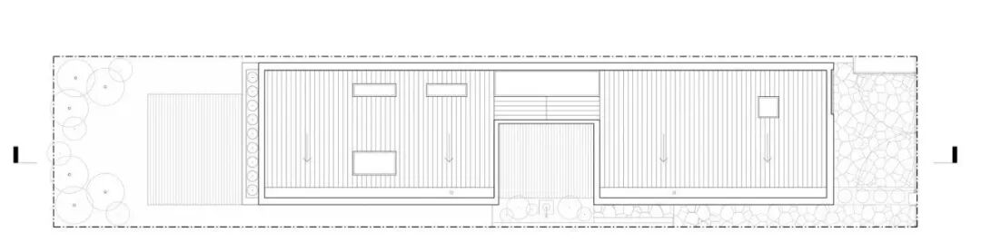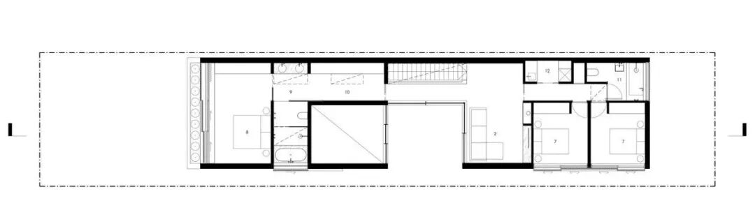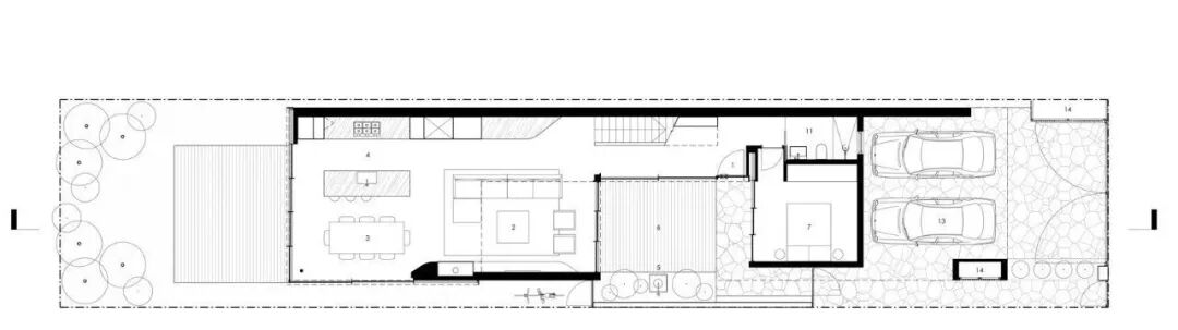 一层住宅内部被庭院划分成两个结构