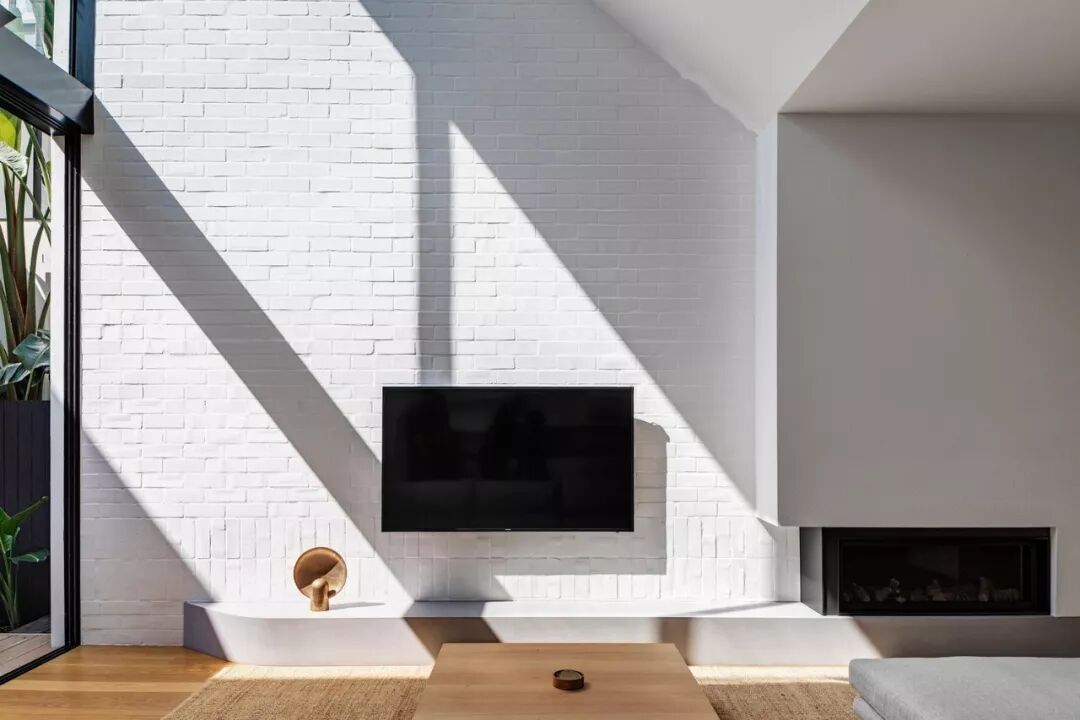 白色的砖墙做为电视背景