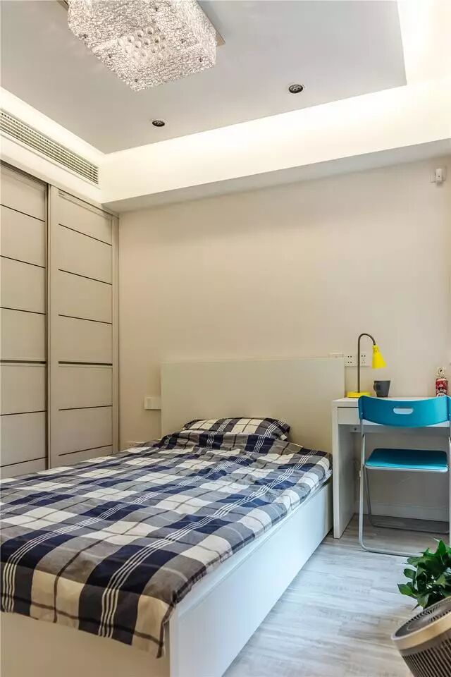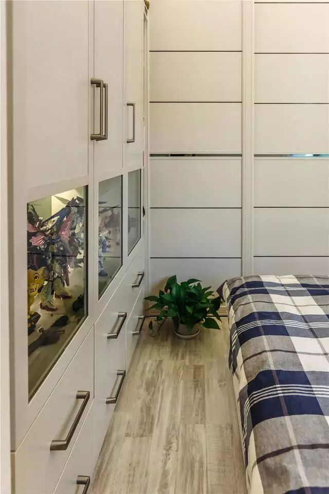 这是次卧,空间小些,但是采光还是不错的,还设计了一个内嵌式的衣柜。