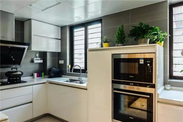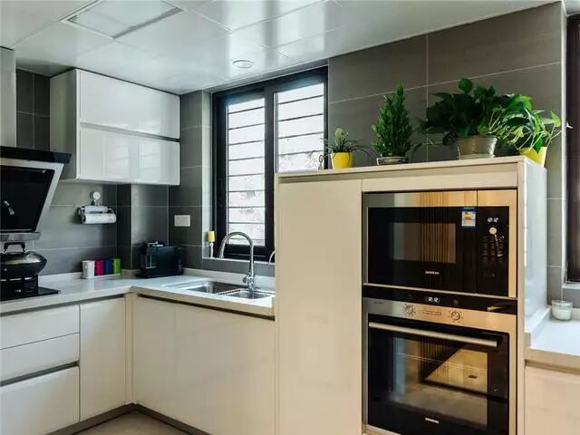 这是厨房,厨房的采光好,视野好,颜色是灰色的,既时尚也好打理。