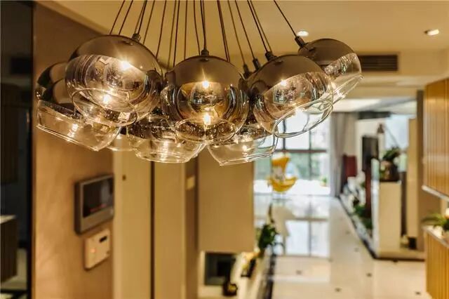 房子的户型就是客餐厅一体的,为了不影响房子的采光,所以没有设计隔断,这样感觉很通透,很大气的感觉。