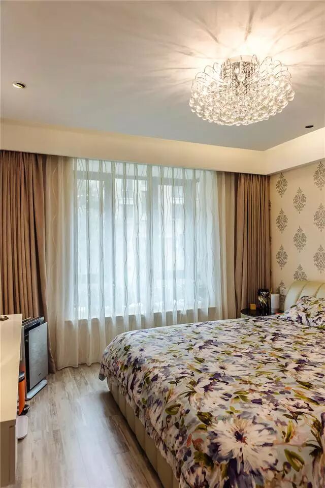 这是主卧,典型的欧式风格,卧室里面是壁纸,很温馨的感觉,最喜欢的就是主卧的吊顶,很梦幻的感觉。
