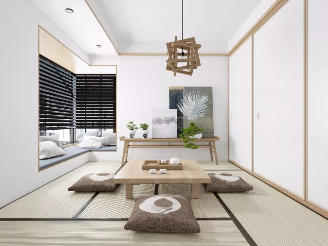 和式风格具有浓厚的日本民族特色,线条清晰,从顶面到地面装修所用的材料都是最天然、最朴实的材料,更能表现出一种平和的意境。在装饰中较少使用金属的饰品和家具,更多的是采用原木、席和竹等,保持它们原有的色泽,不加修饰地表现出来。
