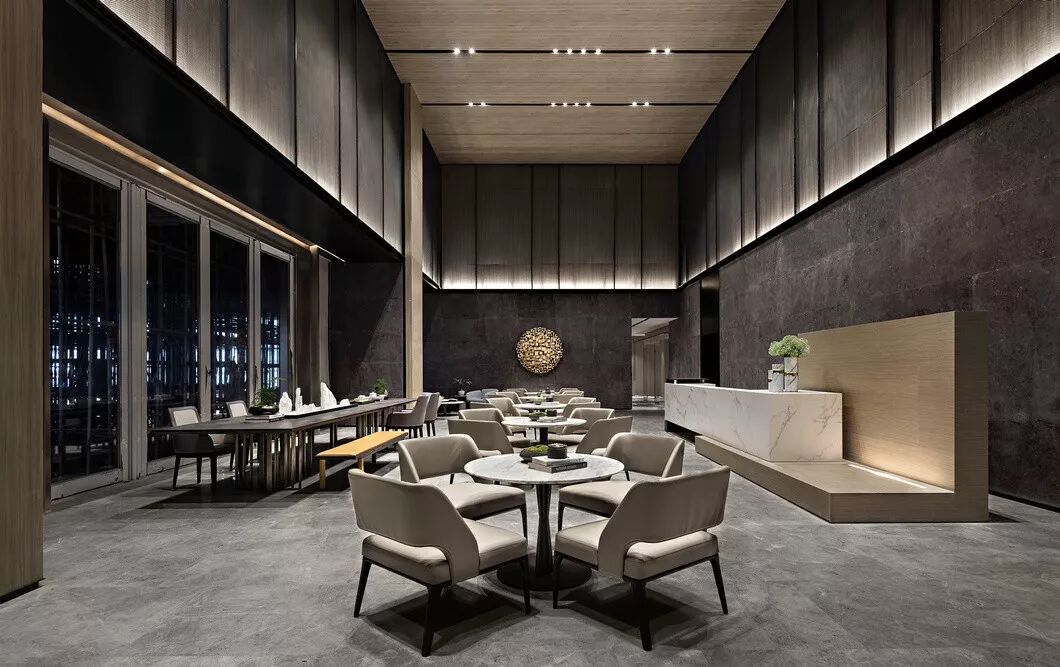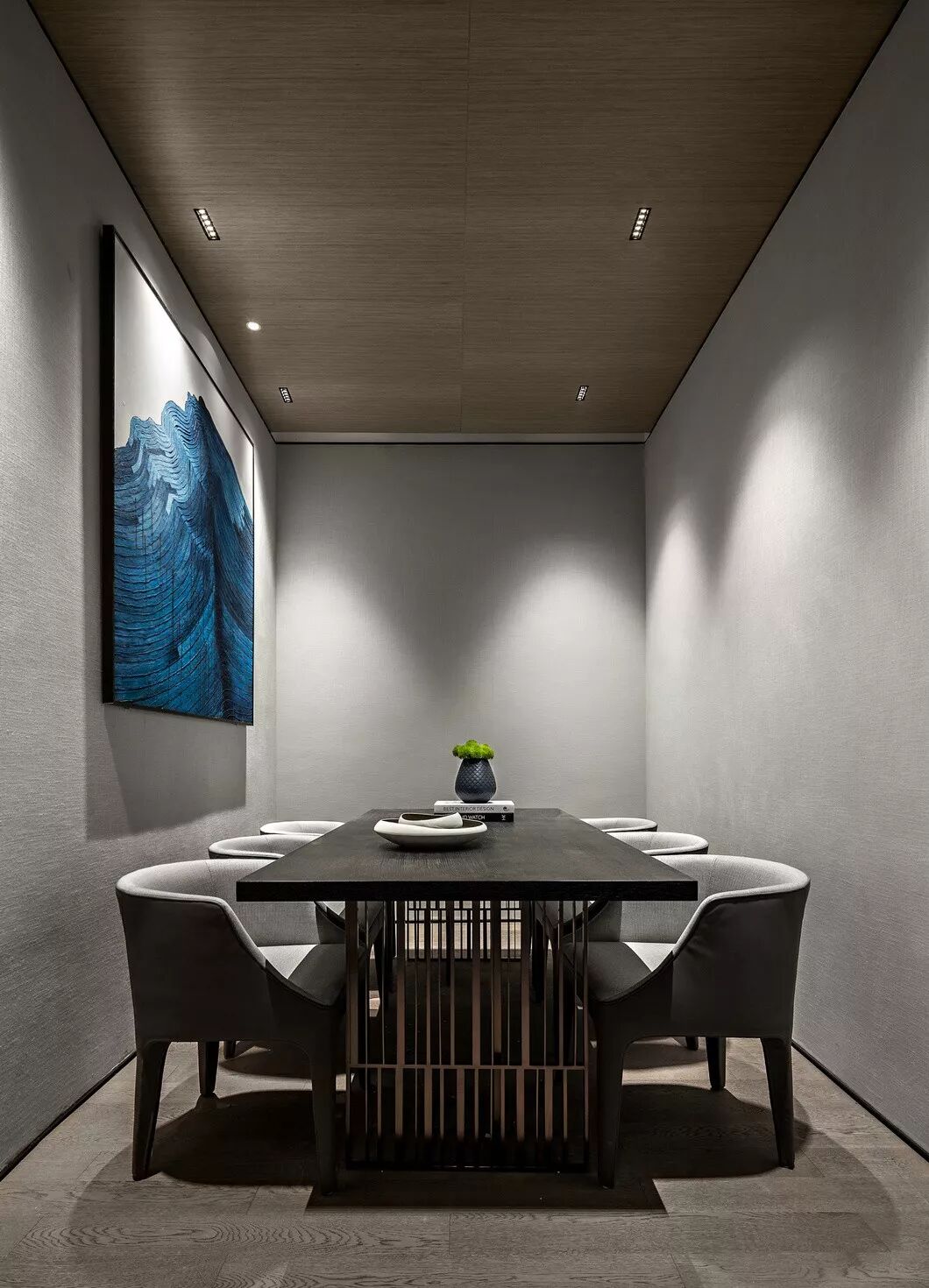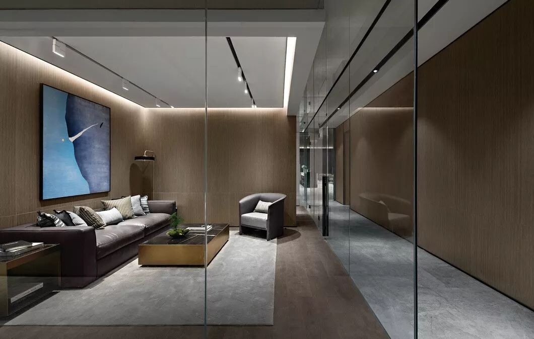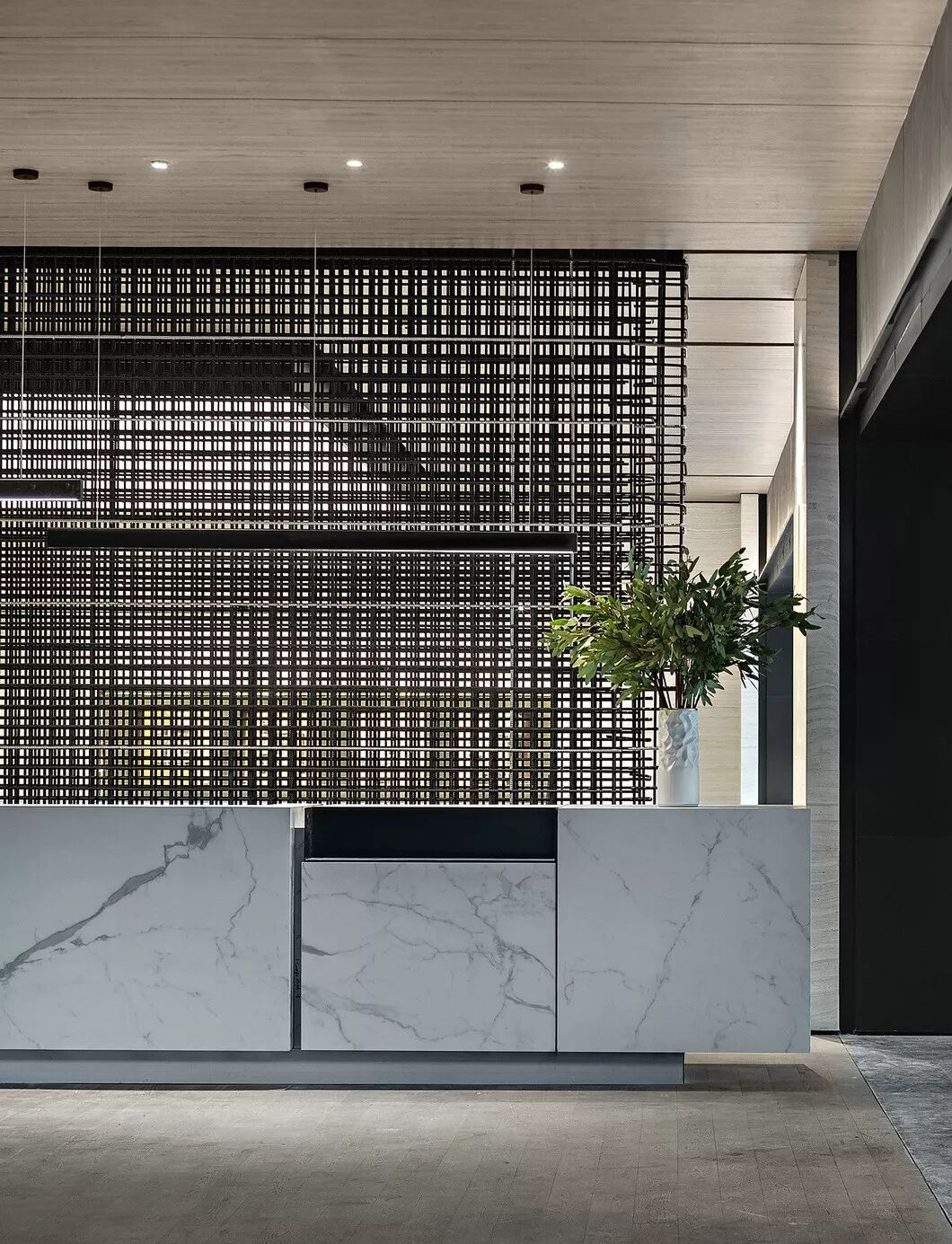 致广大而尽精微,在小处领略微妙的含义。洽谈区的设计以简洁有序的空间布局、清冷简约的石材、淡雅而节制的素色沙发,搭配相得益彰,自然的形态描述出生动的仪式感,所选用意大利Minotti品牌家具,注重舒适度及设计感的双重呈现。