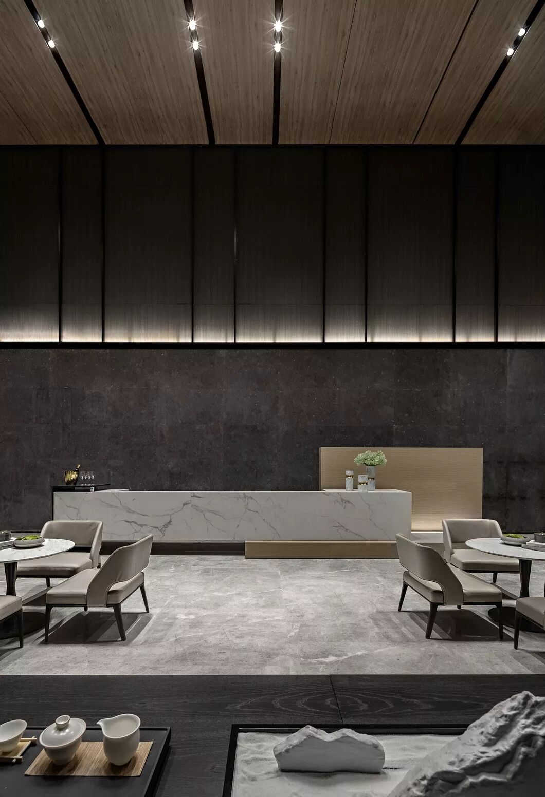 简约的基调与人文的结合更是将看似无形的设计融入到售楼处的每一个角落。富有人文气息的苍劲松柏、云山梦水的概念给予整个空间以灵秀的气质。漫步在售楼处中,步移景异,这些充满生活感的场景让人印象深刻。