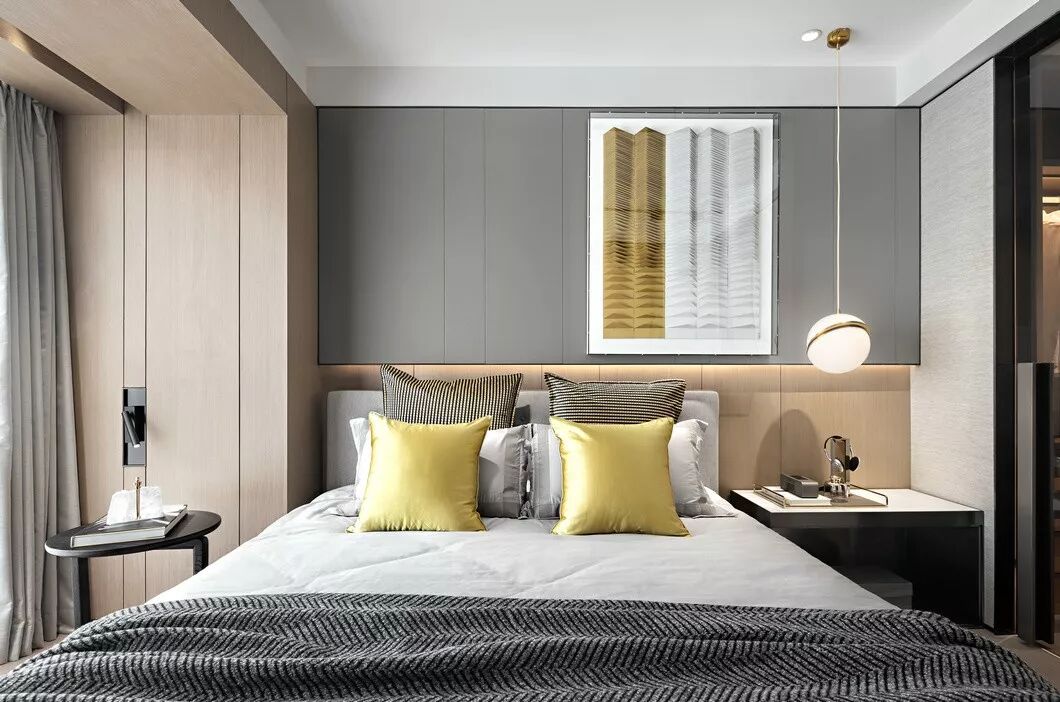 高级灰占据的卧室,弱化无足轻重的饰品,卧榻的地位被凸显无疑。墙面大幅绘画,选用弗洛伊德式的“梦”主题,如同一扇门打开远方。