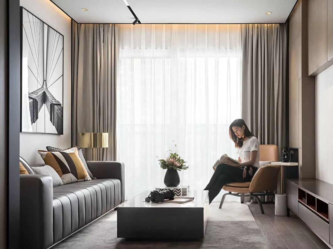 “少即是多”的设计方法对标一种生活方式,亦是一种简单的高品质生活,即:小则美。居住模式上,在深圳这样一线都会,大家族的生活方式早已不复存在,单身人数不断增加,崇简生活无疑成为商务人士的理想。