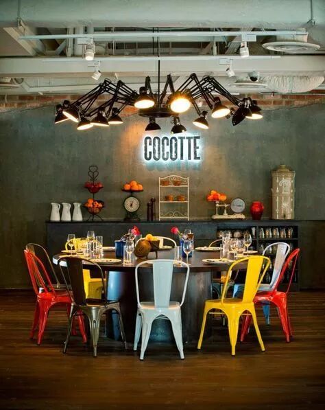 (家具虽然色彩多,但依然给人一种在工业风的环境中开party的感觉。)