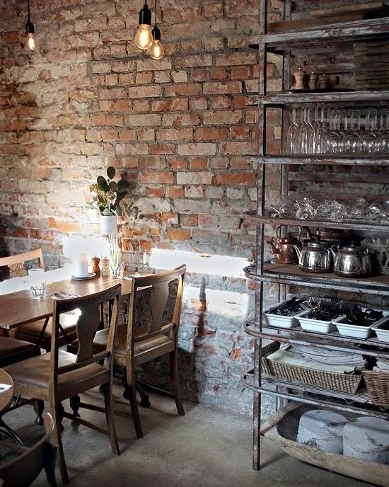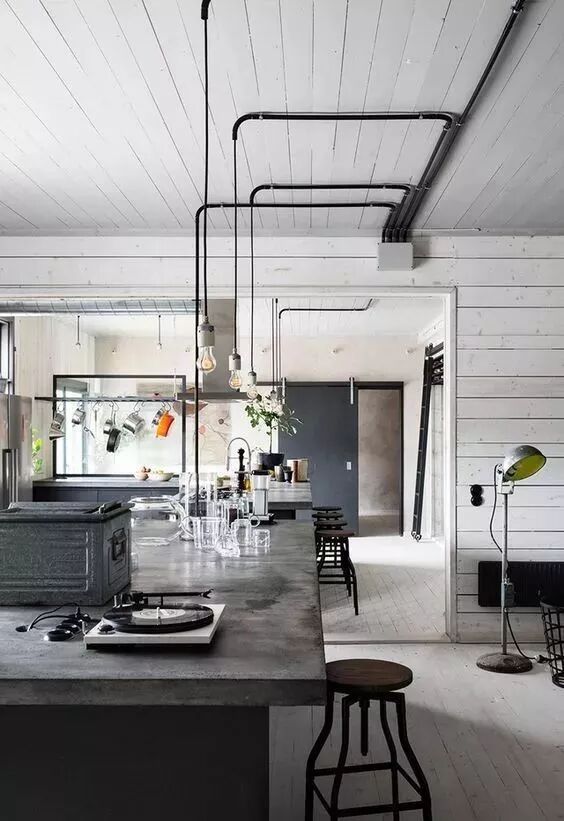 工业风来源于早期工业生产环境,所以砖墙,水泥,金属是工业风的主旋律,这些东西造价低,耐脏(本身就不干净),缺点就是不好打理亦不好维护。