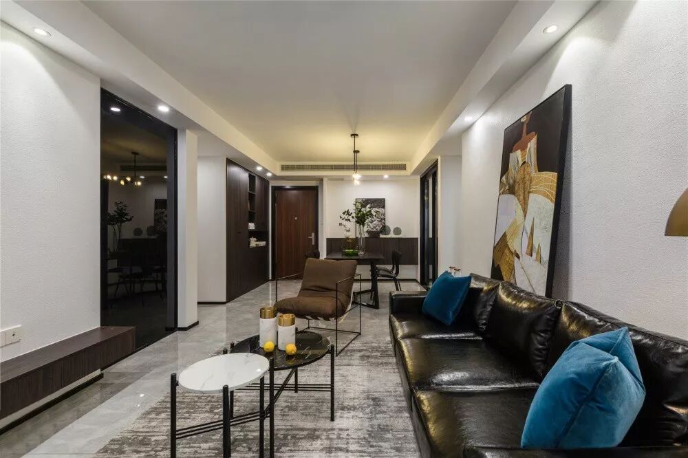 本案是一个随性自主的109㎡生活空间,现代简约的风格,色彩上选择理性的黑白两色,为了协调清冷感,在软装配饰里加入了少许的金色及蓝色,柔化空间的同时也让现代空间具有了时尚感。