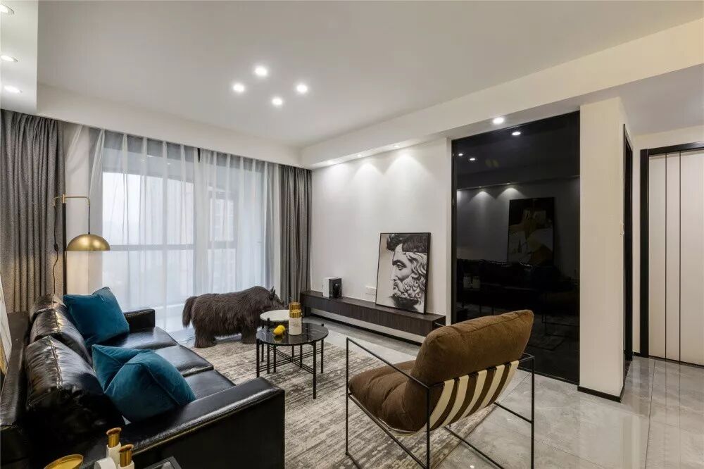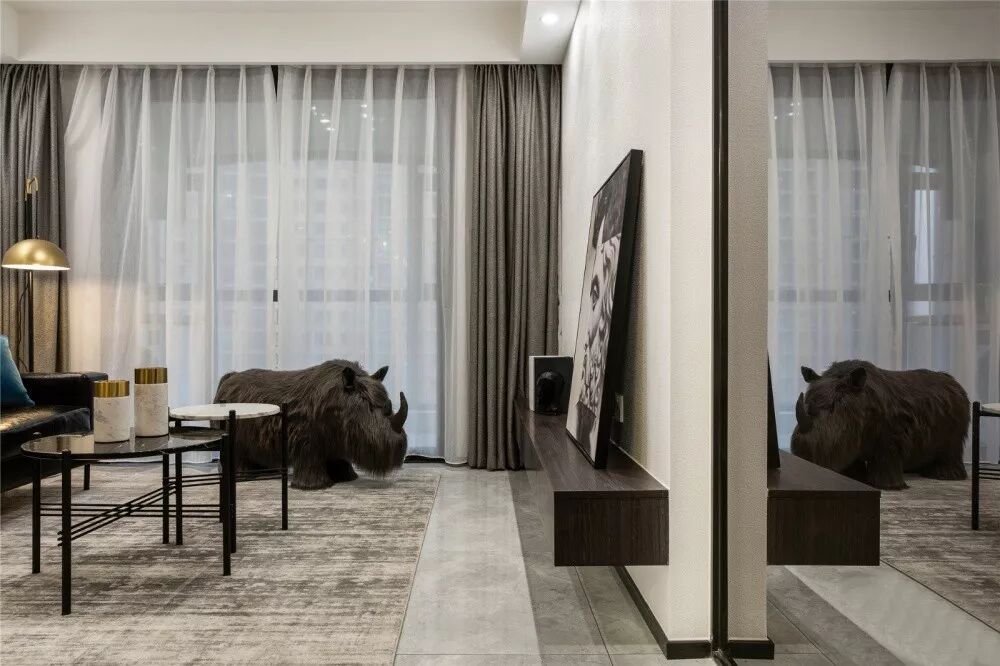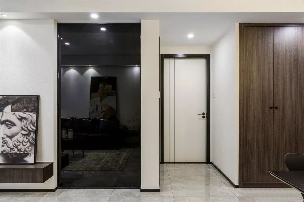 ▲ 深色玻璃连结客厅与主卧,质感满满,现代气息浓郁。