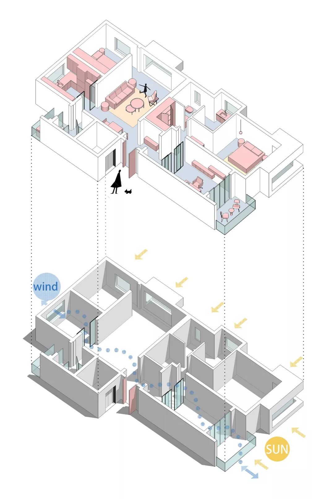 不被结构框限想法,为了达成屋主『空间加大』的期望,设计重新编排立体界面的吻合关系,建立通达、平和的空间层次,着重在采光、通风两个重点,其动线设计一气呵成,空间的运用随心所欲。