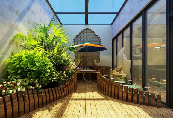下沉式庭院还可以改造成复式阳光房,顶面采用断桥铝门窗,金钢网防护,电动天窗,让室内空间不受风雨沙尘侵扰。当阳光透过顶面玻璃,让整个庭院都笼罩在暖阳下,哪怕不安装中央空调,也可以达到冬暖夏凉的效果。