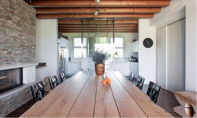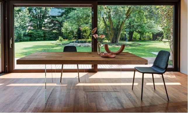原始材料风格中,玻璃和木材,对立极性的完美结合。