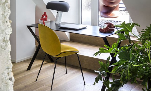 家具紧凑的形状和纯色彩的结合。