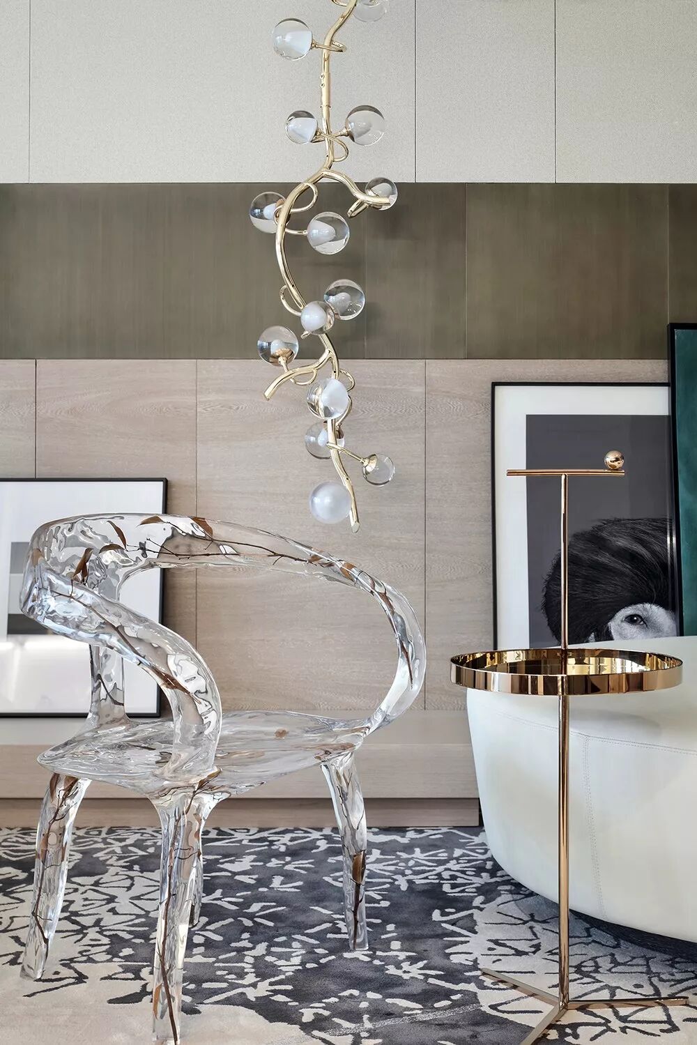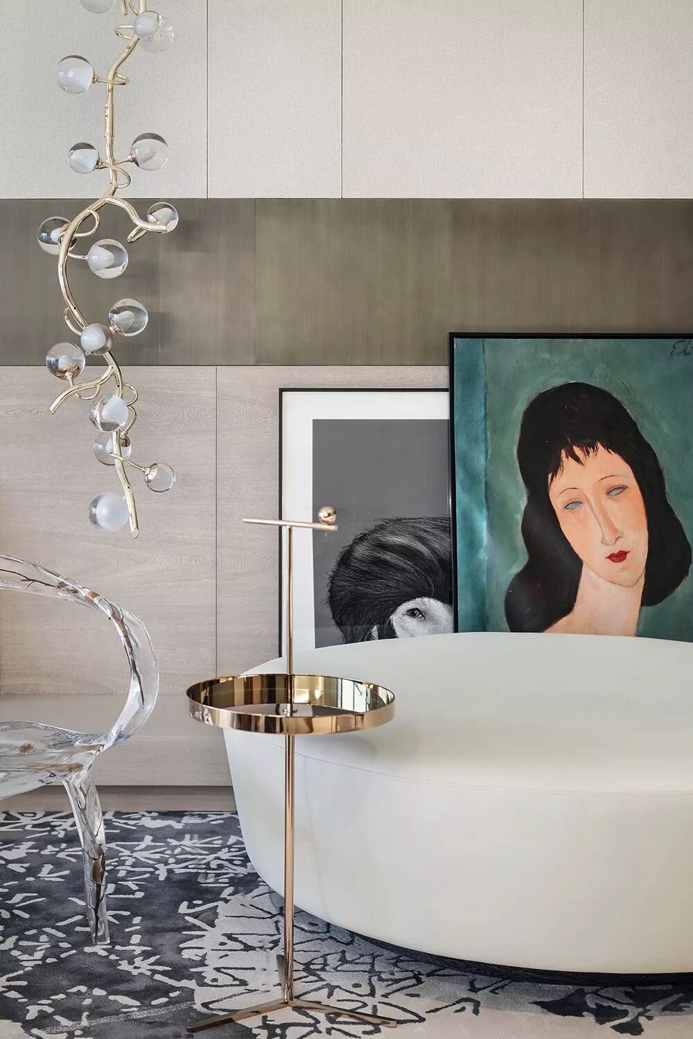 在整体设计中,以女性艺术家经纪人为人物脚本,设计师糅合了各种不同艺术品的元素,演绎了一个时尚、现代、摩登的轻奢主义空间。