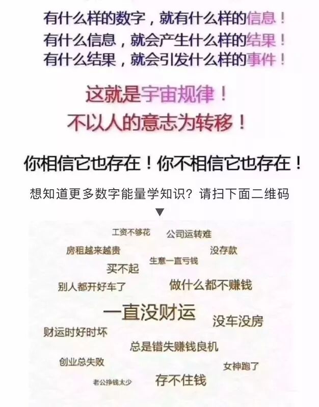 一个人运势不好当然是多方面的,但是手机号码是每天在使用的,当你的数字磁场能量波在叠加到一定程度的时候,就开始对你生活的各方面起到正面或者负面的助力作用!所以你的手机号码就可以反映你的生活的很多信息!所以请一定要认真对自己的手机号码有一个清晰的认识,做到对自己运势有一个全方位了解,更好地走向未来!每个人的需求不同,职业不同,根据自己的当下环境及行业,性格、性别及年龄,需求及八字定制适合自己并旺自己运势的数字磁场。