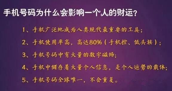 因为手机号码具有唯一性、独占性,非常明显地影响着人们的运势,试想在茫茫的宇宙中只要拨打你的号码,只有你的手机会响铃,能够找到你。身份证号码也是唯一的,每个人的号码都不相同。这些独占性的号码使用越久,使用的频率越高,对你的运势的影响就会越大。手机接发信息,而信息本来就是有磁场能量,磁场能量可能没有善恶,但肯定会有吉凶。吉的信息、吉的磁场能量,不断汇聚,必然带来吉祥、幸福、安康。反之,就是烦恼、痛苦、灾难。这就是为什么有些人无意间换个号之后,原本平顺的生活逐渐出现很多麻烦、破耗、甚至灾难。