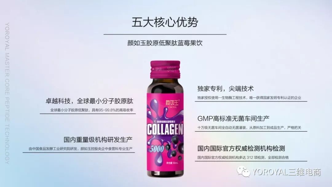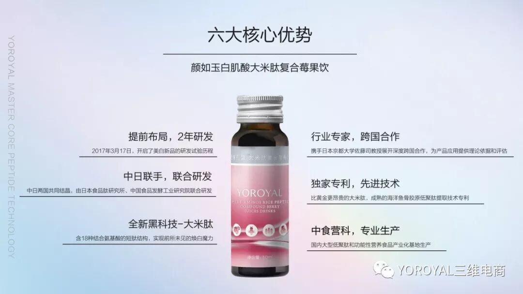 以大米肽、深海鱼骨胶原低聚肽、复合莓、酵母抽提物为核心成分