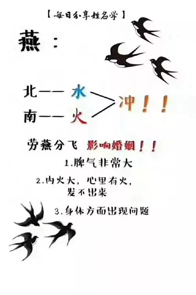如:鹏、彬、爽、书、彦、战、匀、锋、武等,身体和婚姻遇到的苦难比较多。尤其是身体,多有刑伤。比如慧、丰,字形本身就很像手术后留下的缝合的伤疤,很大几率会有手术。有位男士来预测,叫——-彦,我当时测得他夫人生产时难产,大出血,他觉得太不可思议了,他夫人生产时胎盘始终下不来,结果大出血。这彦字与生产有关,在腹部有三撇,你们说会怎样。还有的叫岚、巍、岩的,看着头上的大山就累,压力太大了。叫奥运的也很多,这个奥字,一般都是大腹便便。班里有个女孩叫燕字,我当时点名的时候就感应到这个女生一定被狗咬过,结果果不其然。其实,这些都是建立在丰富的易学知识及人生阅历之上。