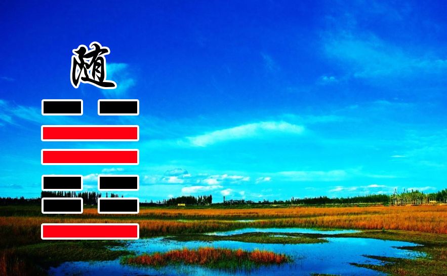 卦中是震下兑上,震代表动,兑,代表愉悦。震在下动,兑觉得愉悦,以此表现兑能随着震的行动而愉悦,也具有随的意思。