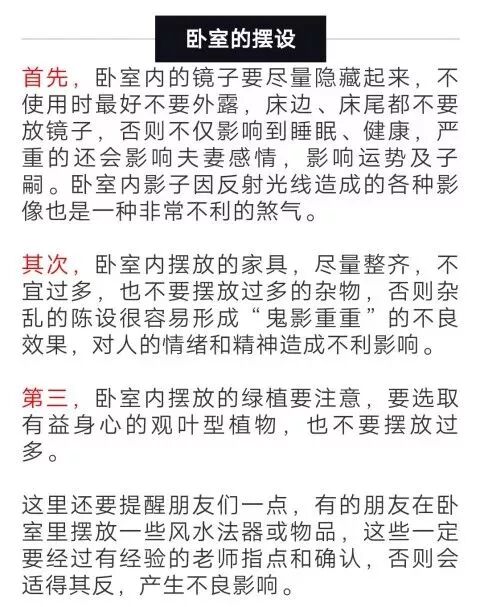特别是女性朋友,往往由于身弱、本身阴气就重,更加容易因为受到外部环境的干扰而影响睡眠。今天就针对于这些问题,从卧室风水上教大家几招,帮助受到失眠困扰的朋友们解决或缓解这个问题。