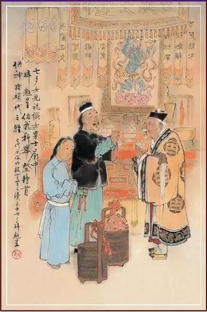 七夕女儿祝织女,男士庙中拜魁星。佑我科举登榜首,供神猪头代三牲。
