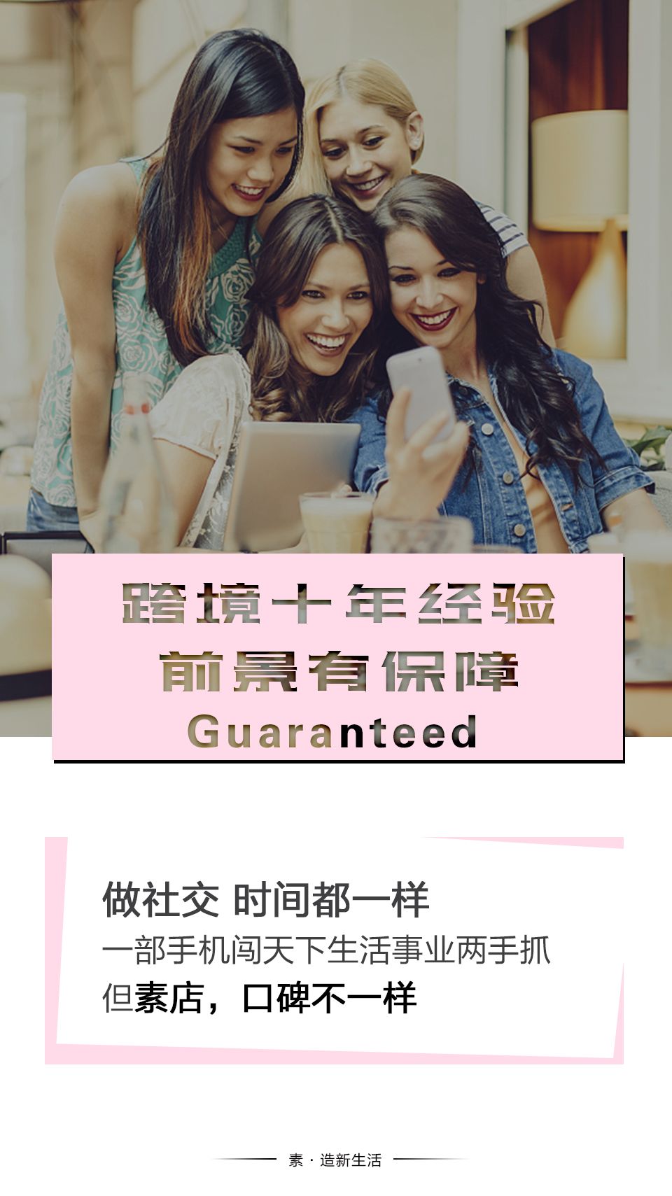 所以记住第一点素店是拥有自己的供应链,这将大大的加强未来素店在社交电商领域,去激烈竞争的一个最大的法宝,我们拥有自主产权一级代理权的产品,同时我们深耕于跨境电商平台,将近十年的时间。所以,我们不会受制于其他的供应链,我们有自我的控制权可以非常好的控制解决真货和假货的问题。而网络购物最怕的就是假货陷阱。