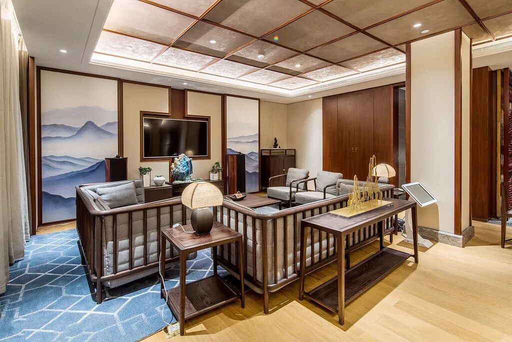 天花板的用色宜清淡一些,“天清地浊”符合自然规律,地板的颜色、墙面的颜色深一些是可以的,但是天花的颜色不能较之更深,也不要采用冷色、暗色。