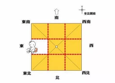 如果住宅缺东北角,东北代表艮卦,艮代表少男,生肖代表丑和寅。一般来说对家中最小的儿子危害性大,实际它的影响面很广,因为东北方为子孙山及靠山,表示所有子孙的工作前景、身体强弱或子孙夭折、流产难产等,重则男丁稀少,破祖离家成为孤寡之人,若只有女孩影响不大。