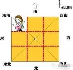 再看一下东南,代表长女的意思,也可以代表年龄最大的姑娘,这个位置为木,如果这个位置出现缺陷或者比较脏,就会影响肝胆、血液。如果东南角,家庭比较完整和比较好的话,按照中心来排在吉位,这说明这位姑娘是最成才的,是比较有能力的一个。