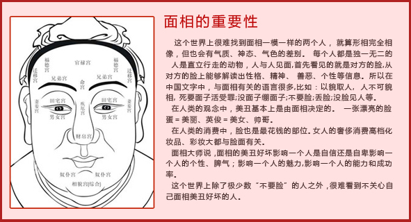 人的额头就象一座房子后面的山,而眼睛和鼻子就象房子,而嘴唇就象房子前面的水,而左右耳和颧骨就象左青龙右白虎。