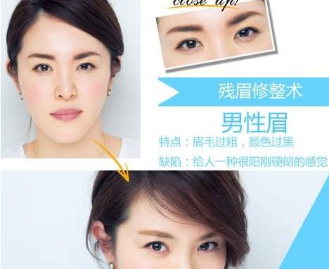 眉毛颜色过重,且眉头过于方正,会给人很强的阳刚气息,
