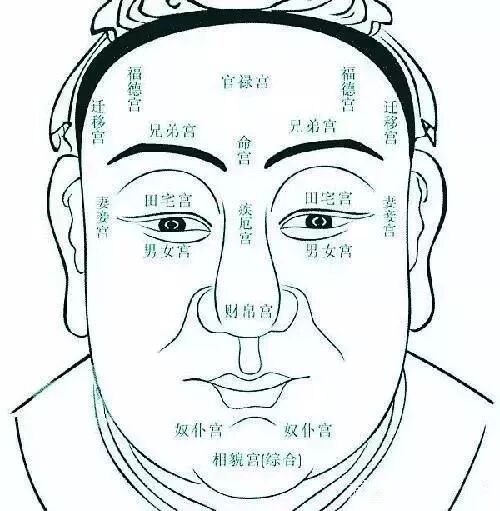 10田宅宫:位于“眉与眼中间的眼皮”部位。关系一个人的家运吉凶。