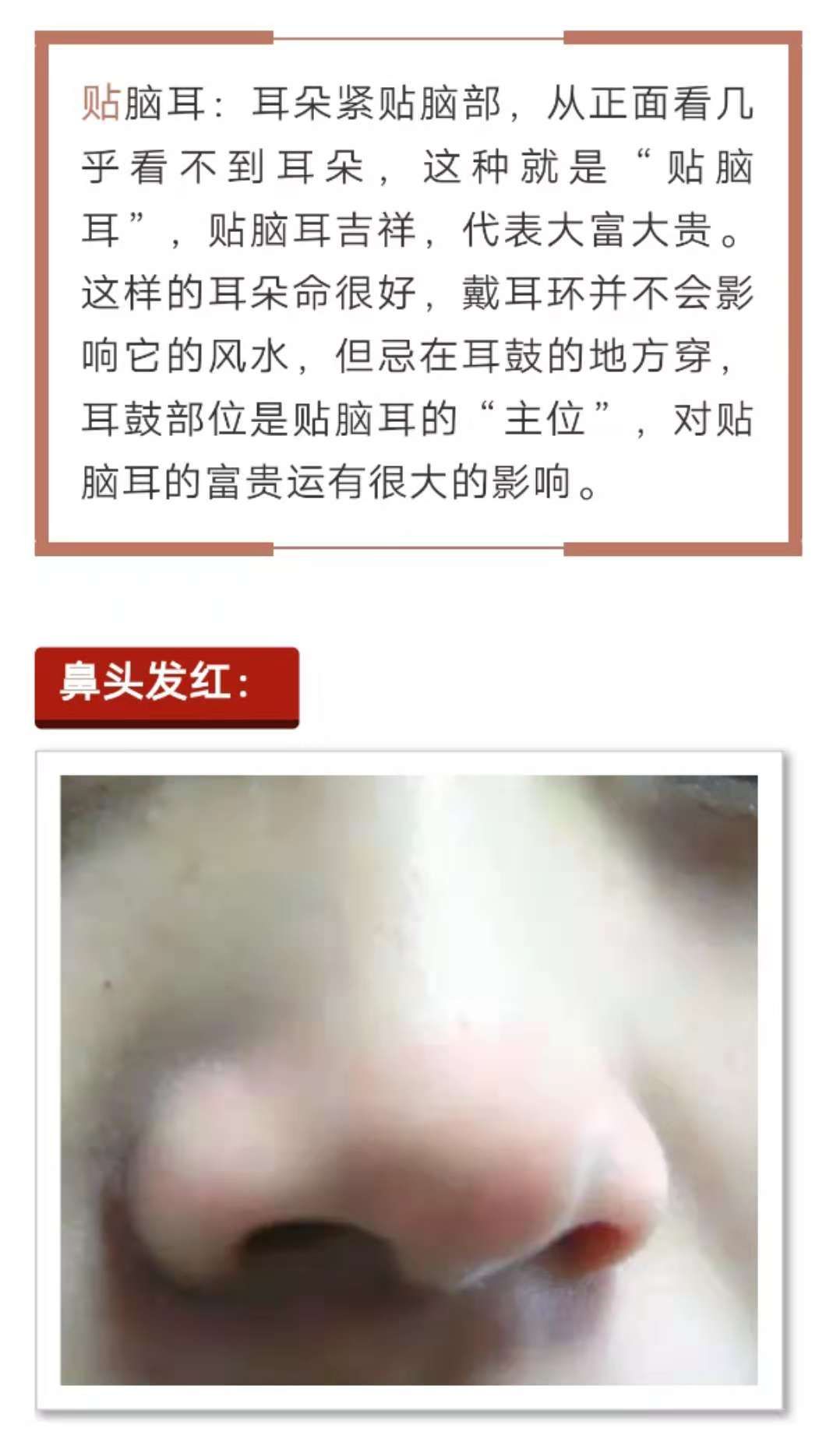家看到这一点可能不会相信,说鼻头发红不是好的吗?还会破财?是的,鼻头发红是破财的象征。而且,往往就是在最近破财。多因为旅游、投资、感情、纠纷、合作等破财,严重的还会有官司等等。