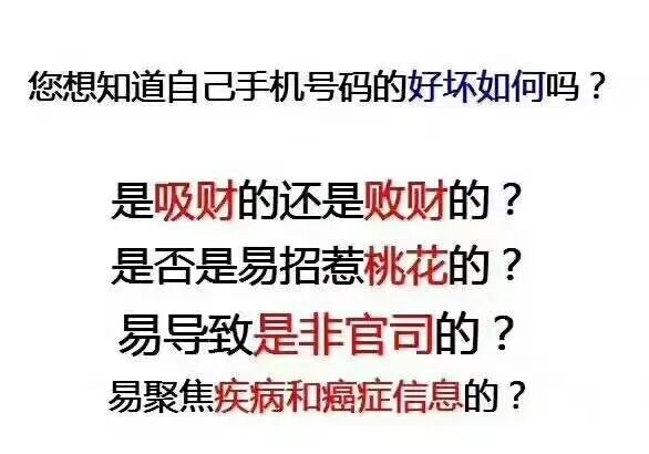 如果手机尾号是以上的数字组合,容易出现以下状况破产,破财,跑路,负债,资金紧张,或身体不适,肝肾,血糖等疾病。官司的数字,大家打起精神来看好。