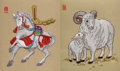 第四组是马和羊。马代表勇往直前,直奔目标,羊代表和顺。如果一个人只顾自己直奔目标,不顾周围,必然会和周围不断磕碰,最后不见得能达到目标。但是一个人如果光顾着和周围和顺,之后他连方向都没有了,目标也失去了。所以祖先告诉我们一往无前的秉性一定要与和顺紧紧结合在一起。