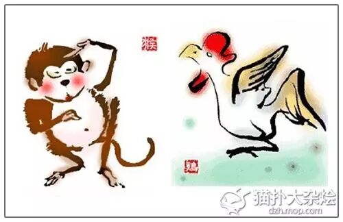 第五组是猴子和鸡。猴子代表灵活,至于鸡呢,以前的年代没有钟,都是听鸡鸣声决定一天的开始,所以鸡定时打鸣,代表稳定。灵活和稳定一定要紧紧结合起来。如果你光灵活,没有稳定,再好的政策最后也得不到收获。但如果说你光是稳定,一潭死水、一块铁板,那就不会有我们今天的改革开放了。只有它们之间非常圆融的结合,一方面具有稳定性,保持整体的和谐和秩序,另一方面又能不断变通地前进,这才是最根本的要旨。