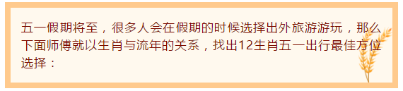 五一,12生肖最有利的出行方位
