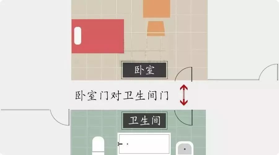 厨房是火旺之地,厕所是阴鸷之地。如果卧室正对厨房或者厕所门,则会导致火气、秽气会径直进入卧室,破坏卧室阴阳协调,造成居住者睡眠不稳,精神不安,容易招致灾祸。