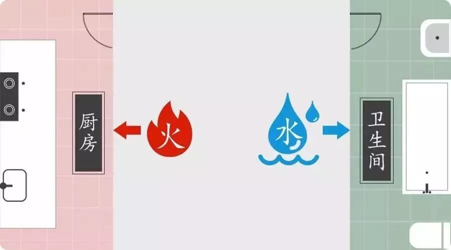 俗话说:“水火无情”,风水学上也是。厨房和厕所是家庭生活中,比较常用的两个地方,厨房五行属火,是一家之中,火气最旺之地;厕所五行属水,是水煞之气较重之地。在很多实际的风水学问题中,导致家庭发生灾祸的格局,大都是因为这两个地方出现了问题。